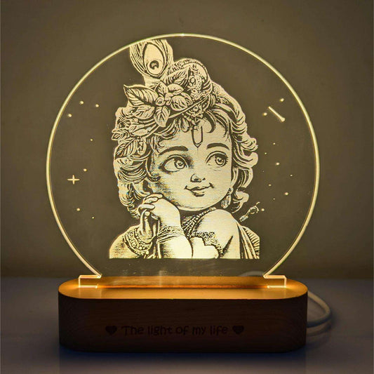 Divine Bal Gopal Krishna Photo Lamp - USB Powered Engraved Acrylic Art